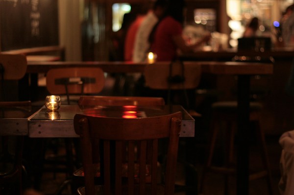 7. Restaurant tables. When you can still see the mark of quiet conversation or uproarious laughter after the group has left.