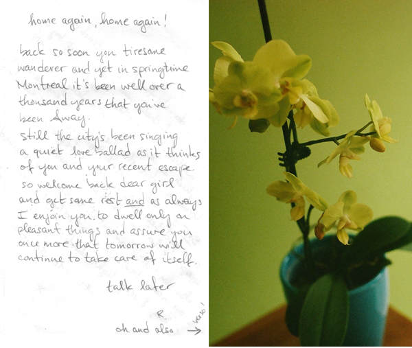 * and lastly, nothing welcomes a weary traveler home better than a note left on your table by miss lake (orchids and a bottle of wine help too). and since it pertains to life in general, i like having it taped to my wall. a reminder, in moments of melancholy, that tomorrow will continue to take care of itself and that everything is going to be a-ok.