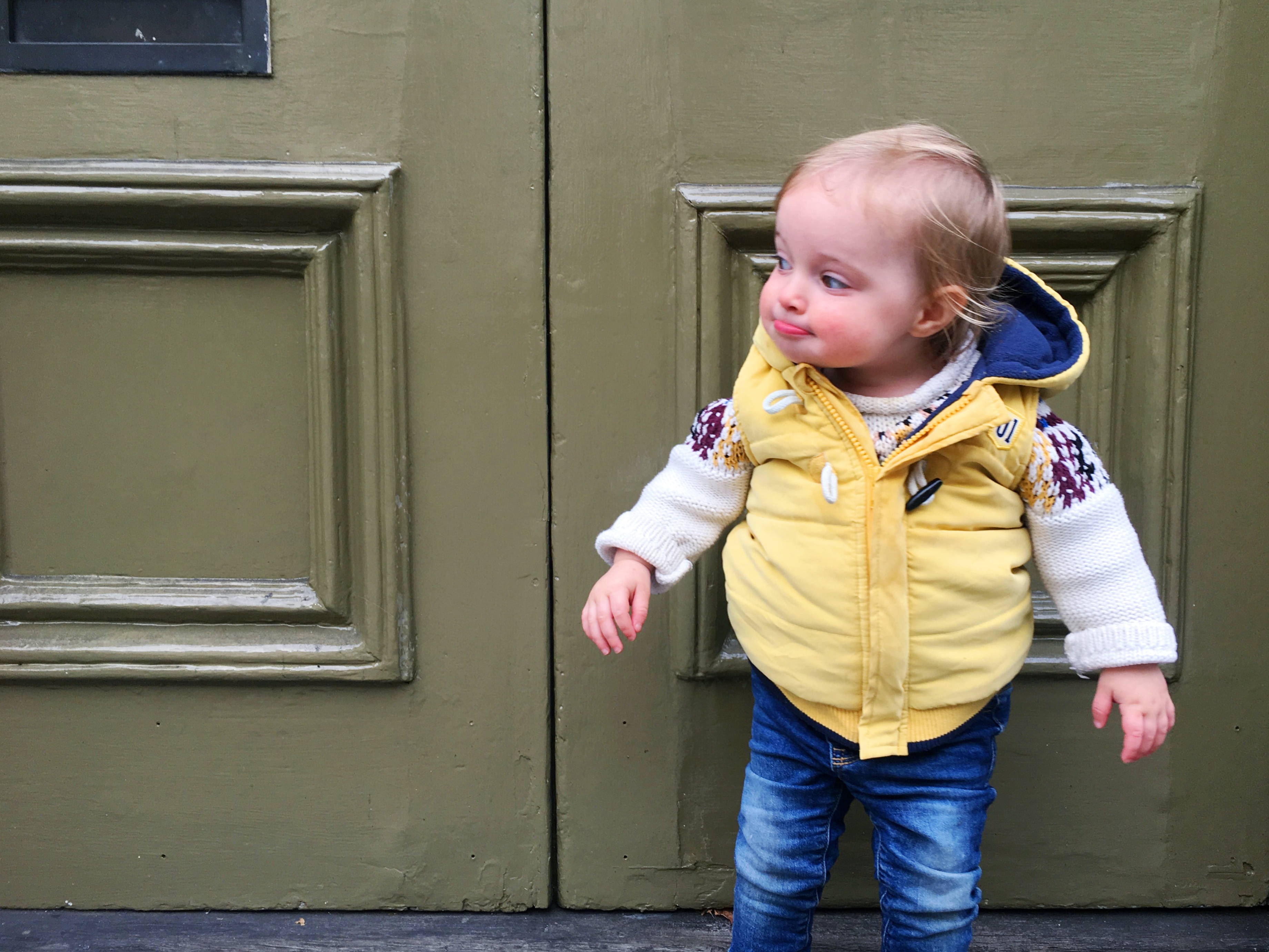 You go about your days as if everything were urgent. There’s an air of frantic around you when we’re alone at home and you don’t get what you want the very second that you want it. You start to hyperventilate and turn red in the face and if you could stomp your feet and say but moooooom, you probably would. The concept of later to you is exactly that… a concept, something abstract, a mere suggestion. I’m trying to teach you the virtue of patience but I’m sure if you could talk you’d probably tell me that patience can go fuck itself. You have your little fit and then you grab your bunny and come in for a cuddle and your crazy toddler surge simmers down until the next moment of discontent. I should count my blessings that at least you (generally) save these fits for home. You did have a moment a couple of days ago when I finally got to meet the lovely Isabelle for the first time and you chucked your container of ketchup on the floor and Jackson Pollock’d her sneakers.